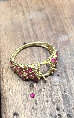 Schräg bis diagonal aus einem „Halmbündel“ gesägt und gefeilt, formieren sich Blüten, Welle, Blätter aus verschieden großen Ellipsen. Der Ring, der sich kuppelförmig über drei Finger legt, geht mit „Pendentifs“ in den Fingerring über.
